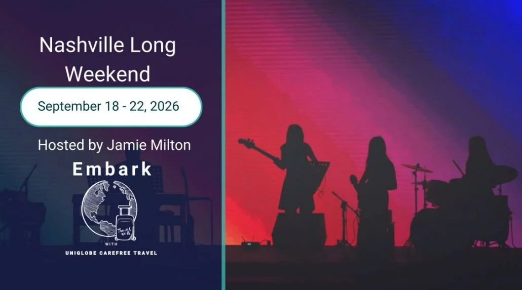 Pack your bags for a 4-night escape to Nashville hosted by Jamie Milton — where live music, Southern charm, and unforgettable experiences are waiting for you.